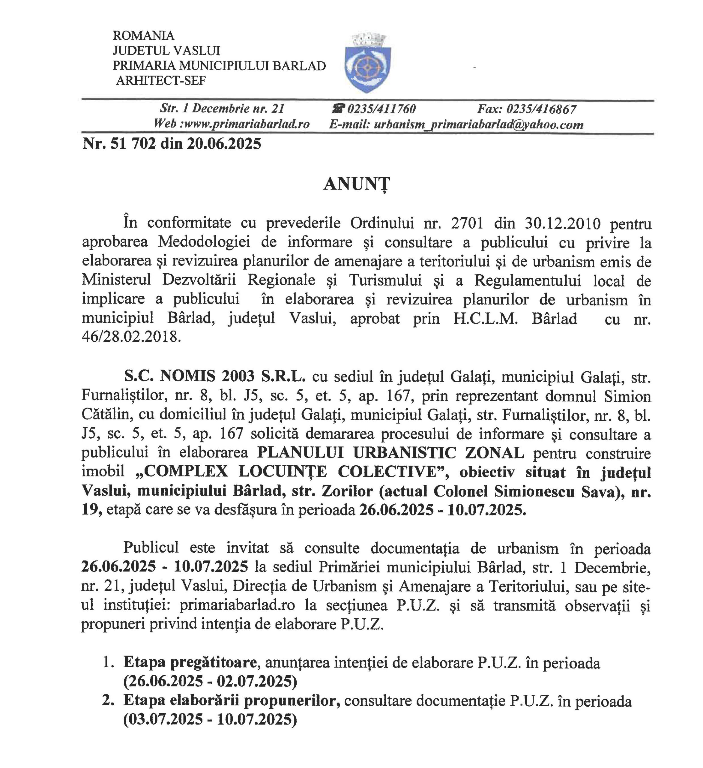 Acasă - Anunturi - Anunț de mediu PUZ Nomis 2003 Construire imobil „Complex locuințe colective”, Str....