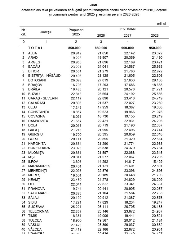 Să mai spunem că la alocările de sume pentru drumurile județene și comunale, în 2025, județul Vaslui este pe primul loc pe țară, cu peste 27 milioane de lei alocate de Guvernul României.