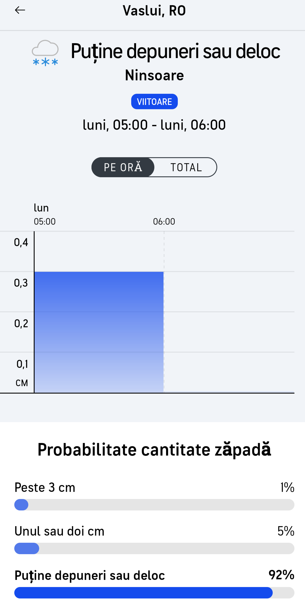 În noaptea de duminică spre luni, anunță meteorologii de la Accuweather, peste Vaslui ar putea cădea primii fulgi de zăpadă din luna februarie 2025. A fost lansat un avertisment de căderi de zăpadă, pentru luni dimineață, între orele 5.00 și 6.00, când se așteaptă câțiva fulgi în mai multe zone.