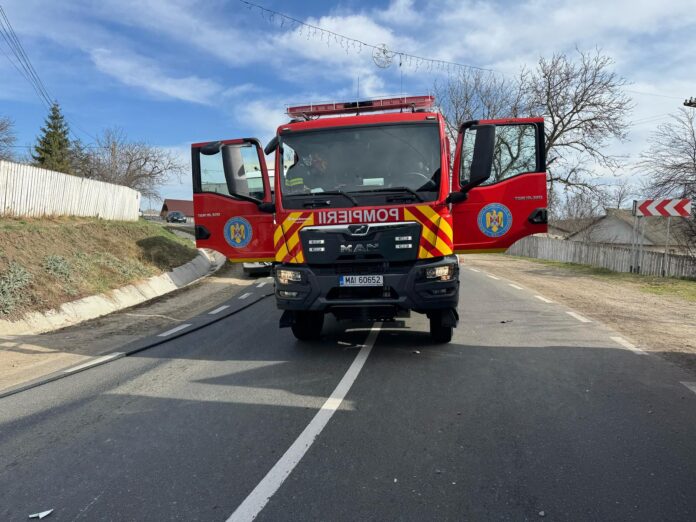 O mașină Delgaz Grid a luat foc în mers, în apropiere de Murgeni