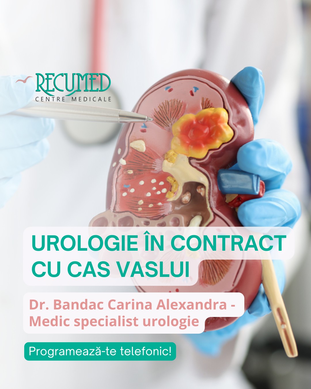 Recumed Clinic, veste pentru pacienții vasluieni: ”Avem o veste excelentă pentru voi: specialitatea UROLOGIE este acum în contract cu CAS Vaslui! Astfel, pacienții noștri pot beneficia de: