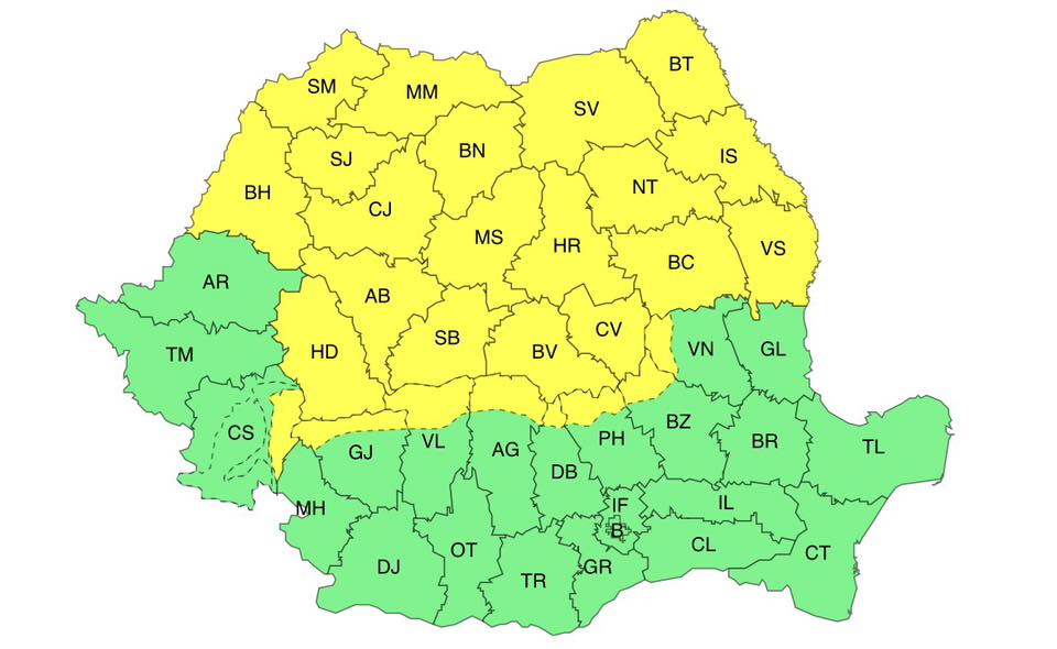 Pe timpul nopții, însă, cerul va fi variabil, cu înnorări și pe arii restrânse temporar precipitații slabe în Carpații Orientali și în Moldova. Va ploua, iar la munte, la altitudini mari vor fi precipitații mixte. Vântul va avea intensificări în Carpații Meridionali și de Curbură cu viteze de 70-80 km/h, în timp ce la altitudini mai mari de 1700 m, rafalele vor depăși 90-100 km/h.