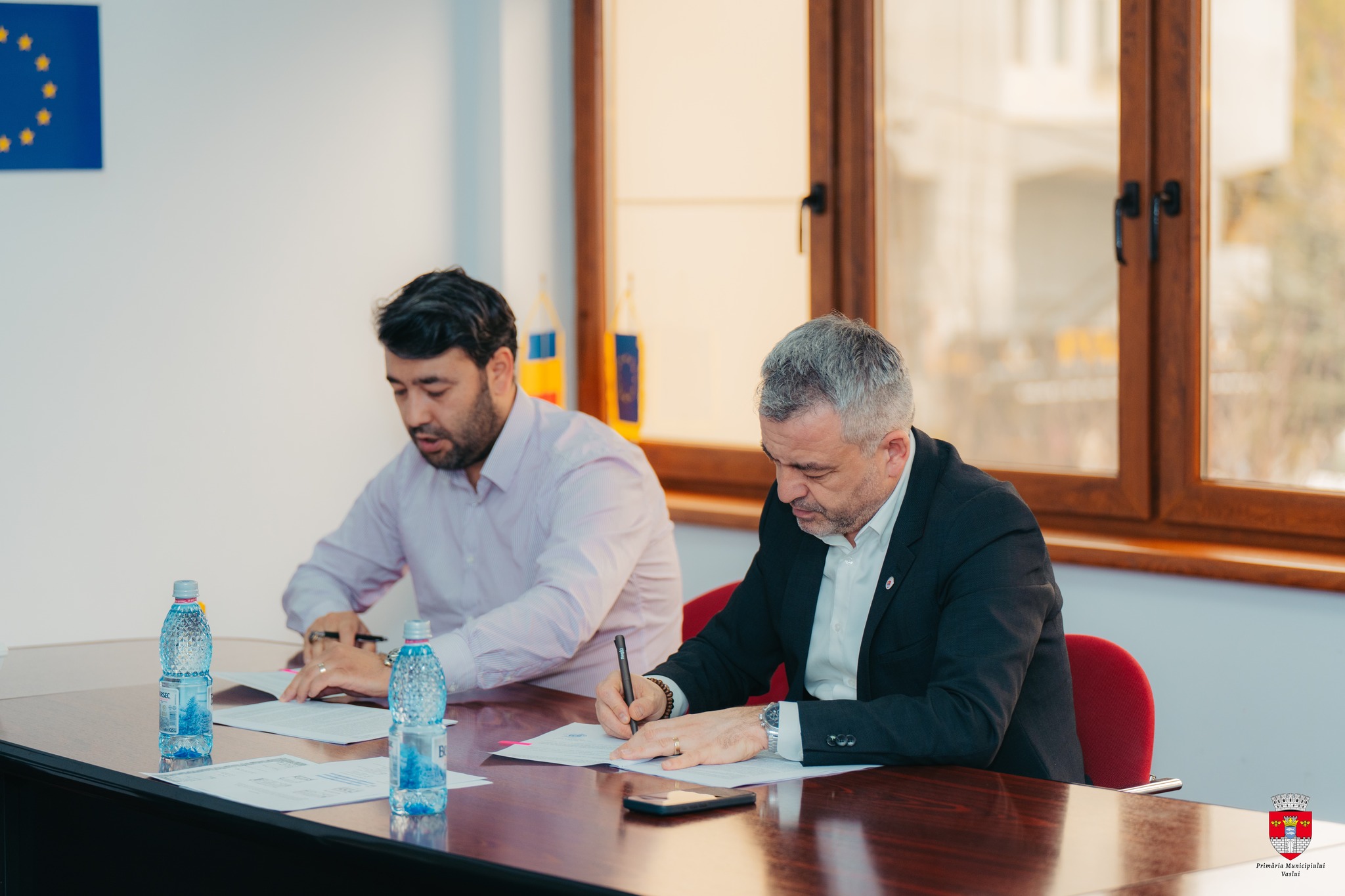 Miercuri, în prezența primarului municipiului Vaslui, Lucian Braniște, s-a semnat contractul de achiziție publică având ca obiect achiziția a 13 autobuze electrice și 18 stații de încărcare.