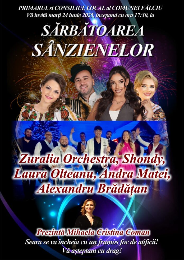 Pentru locuitorii comunei Fălciu, sărbătoarea Sânzienelor marchează ziua acestei comunități, ziua în care fiii satului se adună și petrec, frumos, până spre dimineață. Primarul Neculai Moraru, sufletul petrecerii de ”Sărbătoarea Sânzienelor” așteaptă toți vasluienii, începând cu ora 17.30, la o mare, mare petrecere.